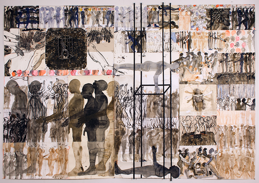The History of Exodus, 2021, collage, 265 x 390 x 7 cm, foto Peter Cox, beschikbaar