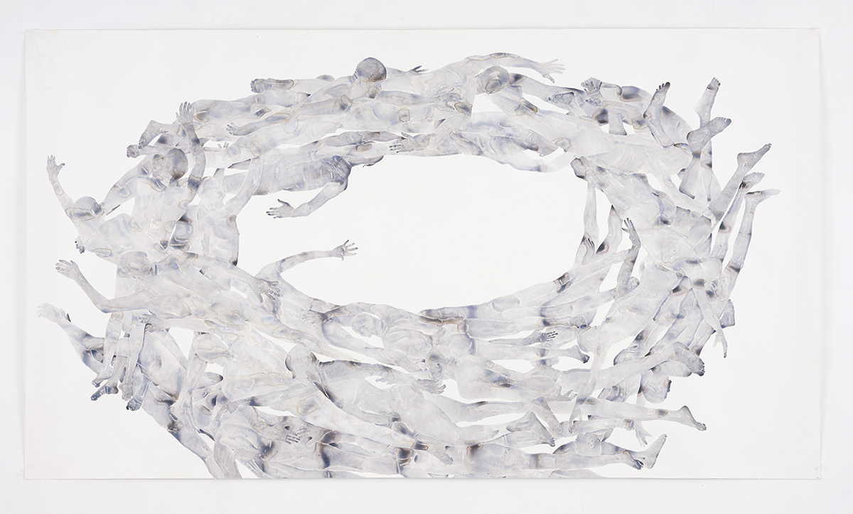 Op Drift, 2021, aquarel, 265 x 303 cm, foto Peter Cox, privé verzameling Stockholm