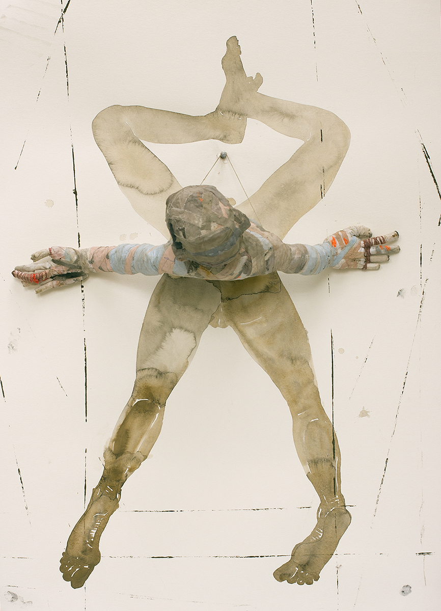 Third Life, 2022, aquarel met beeld van oude lakens, stijfsel en touw, 100 x 70 x 30 cm (diep), beschikbaar