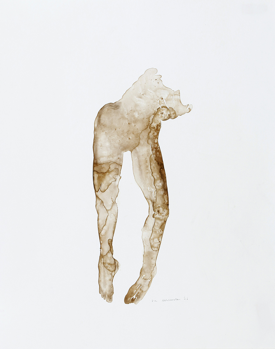 Hard Labour, commission sacristy Akerk, 2026, charcoal, watercolor, papier-mâché sculpture, 293.50 x 99.5 x 22 cm