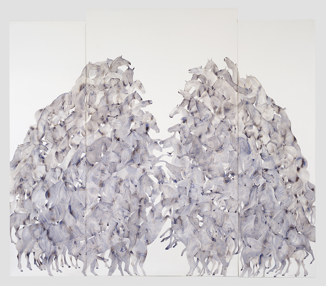 Op Drift, 2021, aquarel, 265 x 303 cm, foto Peter Cox, privé verzameling Stockholm